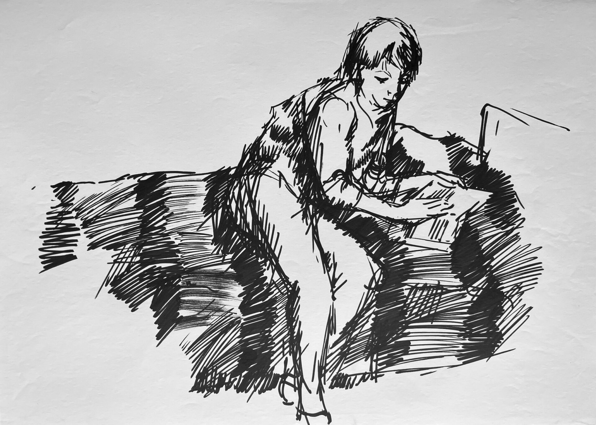 Lesender Junge (auf dem Bett)